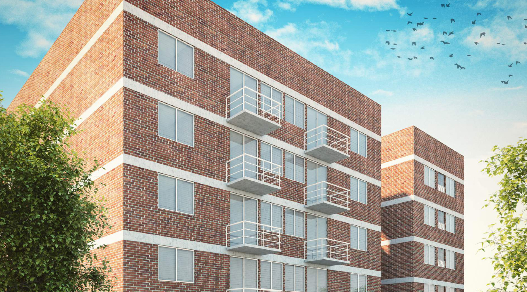 Esta formado por unidades departamentales básicas de dos recamaras agrupadas en cuatro bloques a partir de sus servicios verticales (Torre A, torre B, Torre C y Torre D)