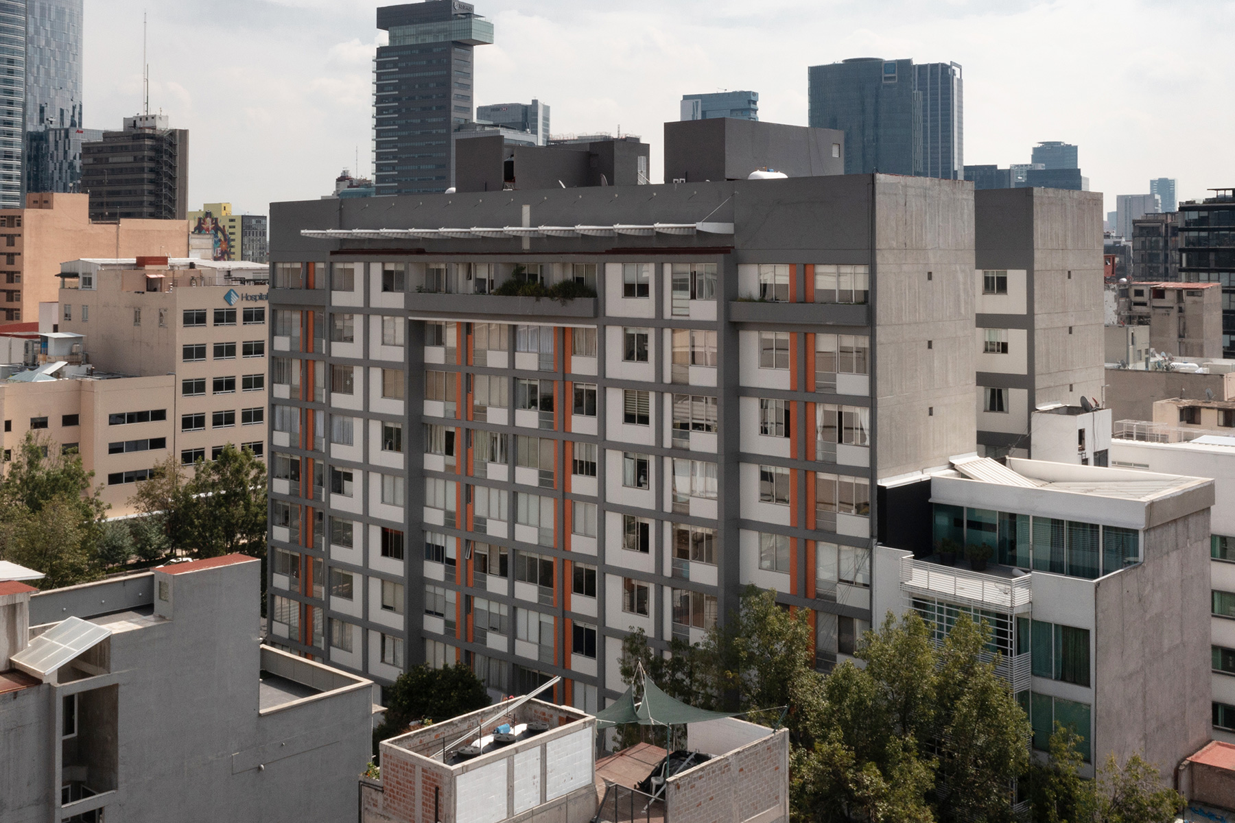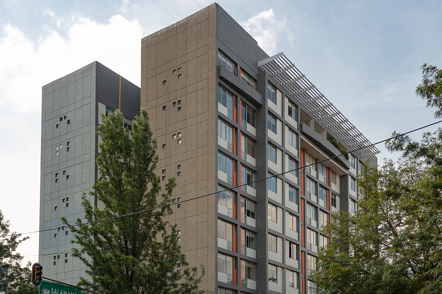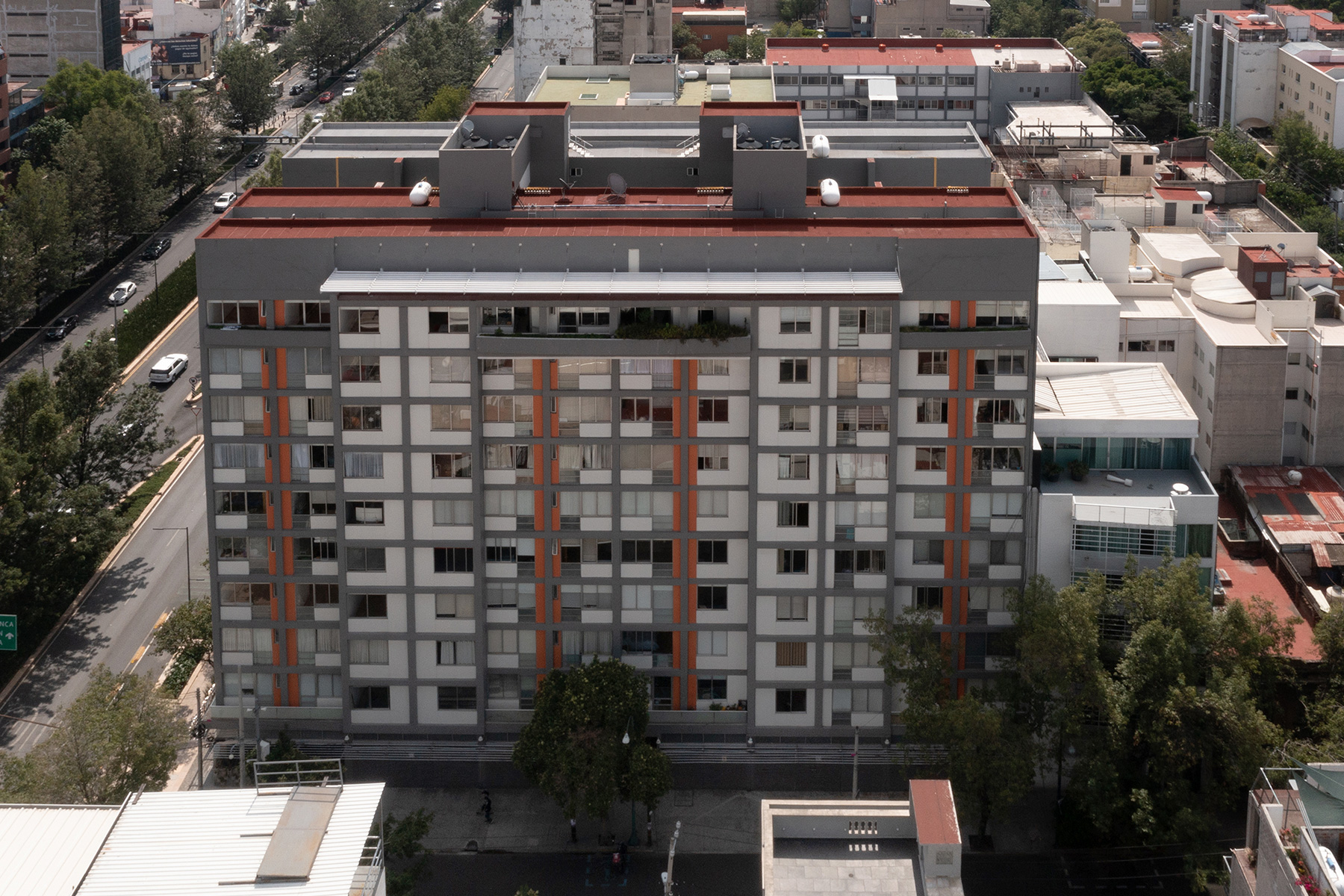 Edificio de departamentos en condominio con 11 niveles, 99 unidades de 74 a 115 m2.