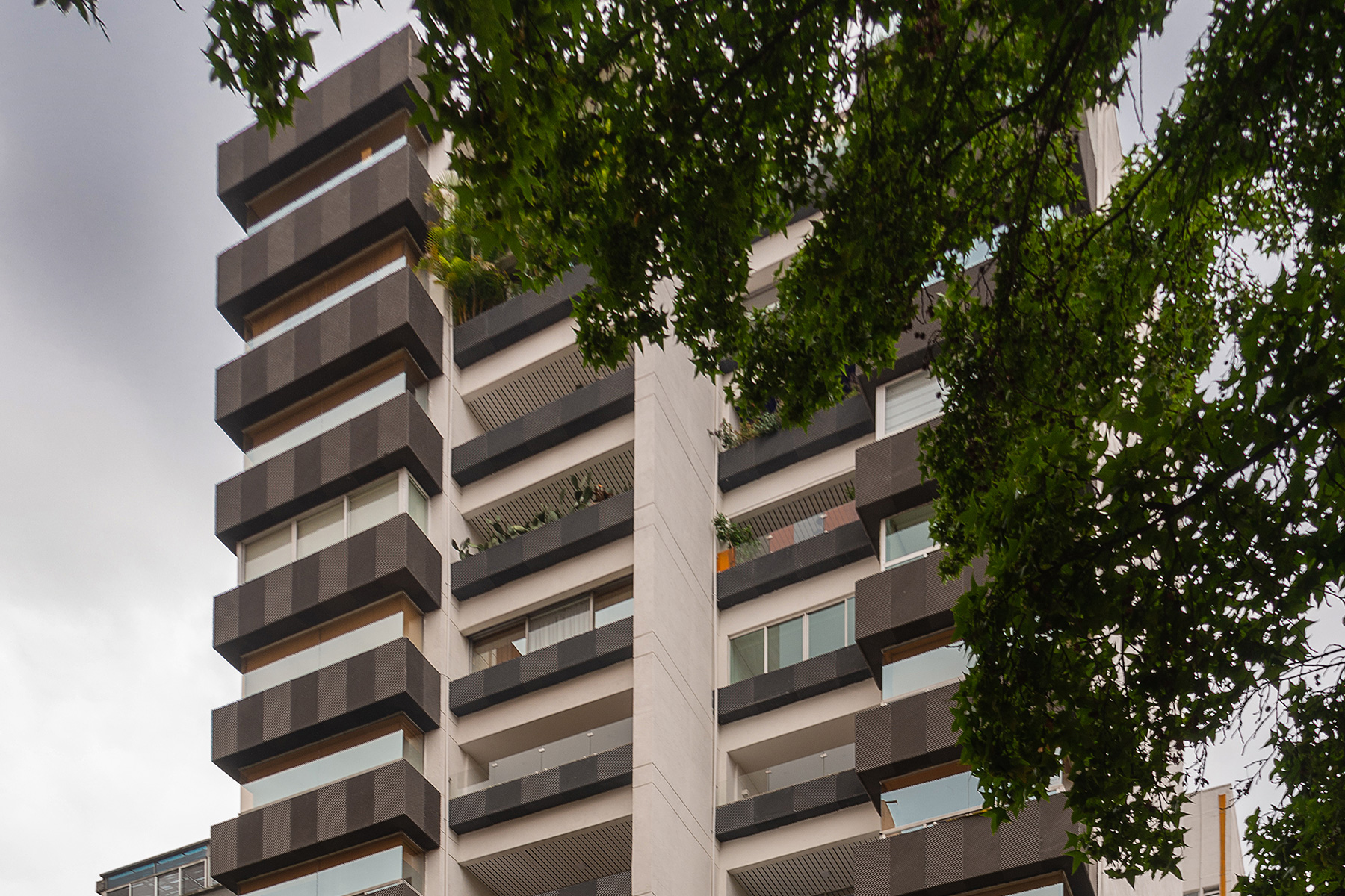 Edificio de departamentos en condominio con 14 niveles, 45 unidades de 75 a 160 m2.