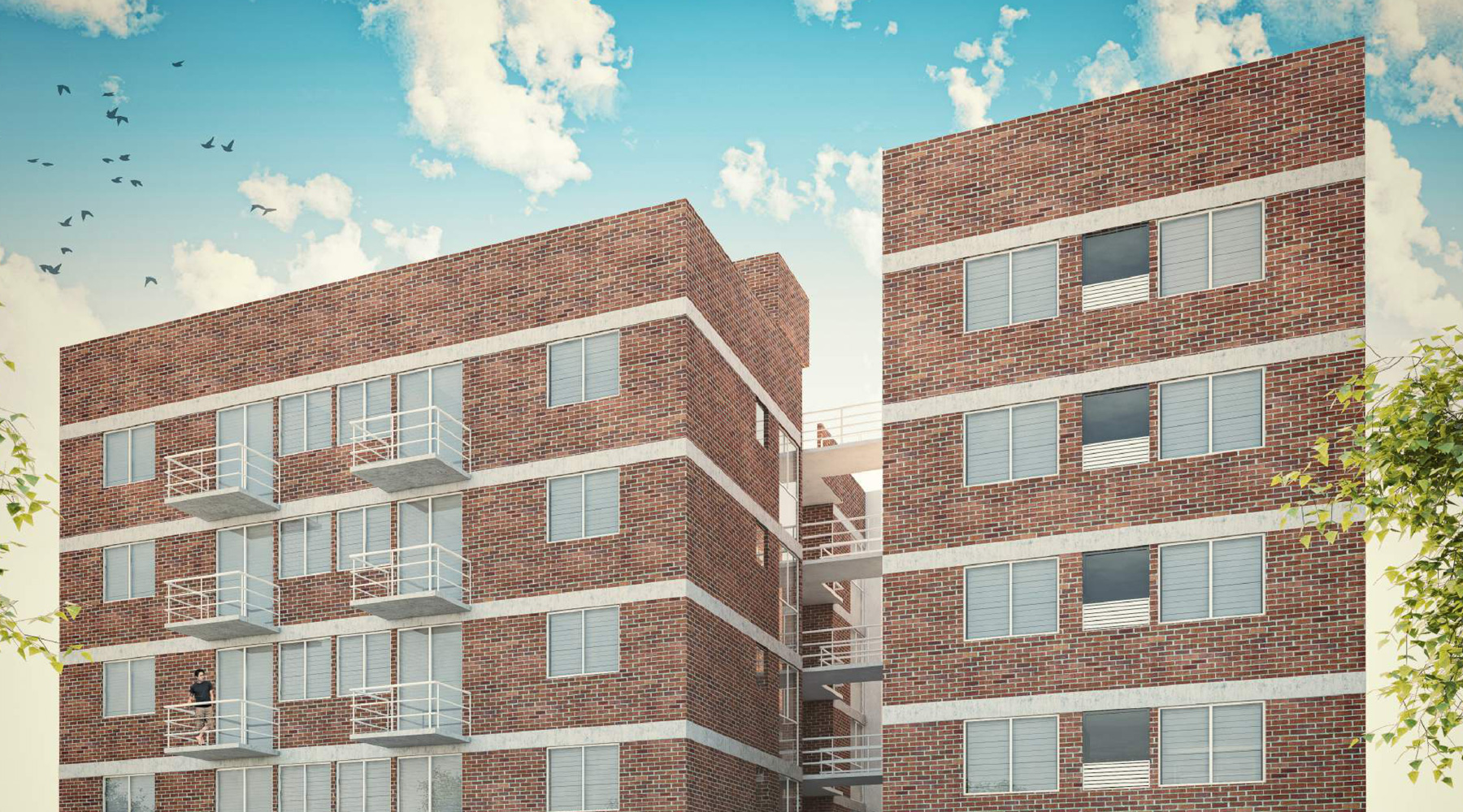 Esta formado por unidades departamentales básicas de dos recamaras agrupadas en cuatro bloques a partir de sus servicios verticales (Torre A, torre B, Torre C y Torre D)